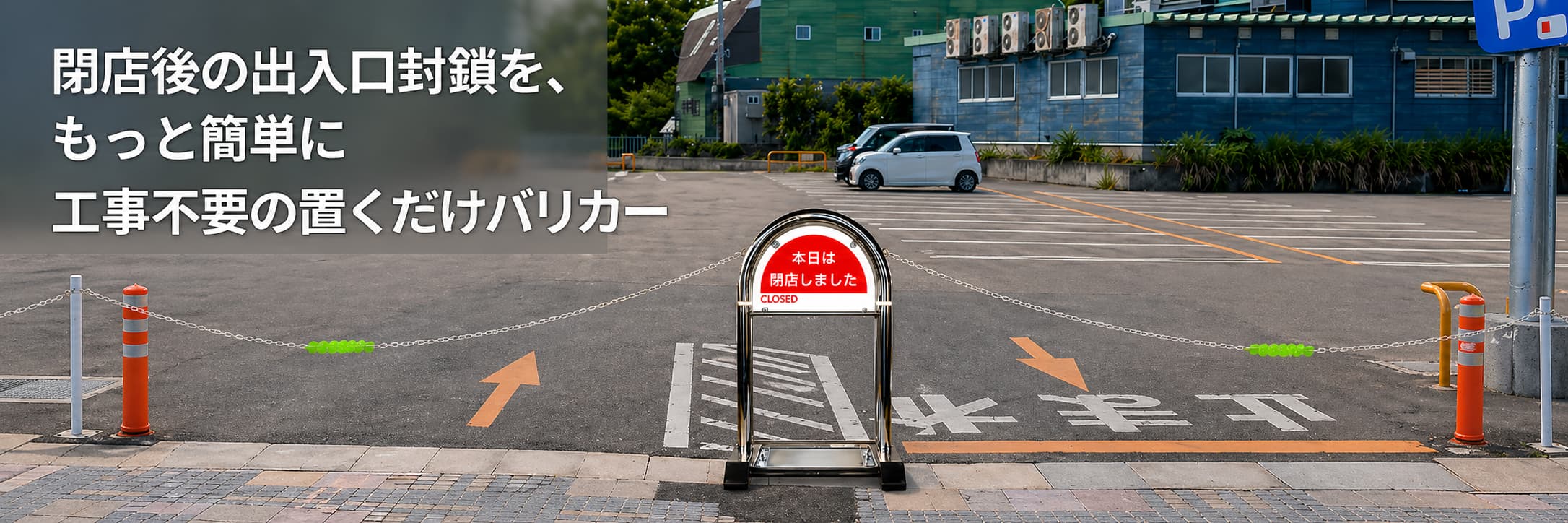 花まるバリカー+アルミチェーンの構成に変更し、封鎖の安定性が大きく向上。